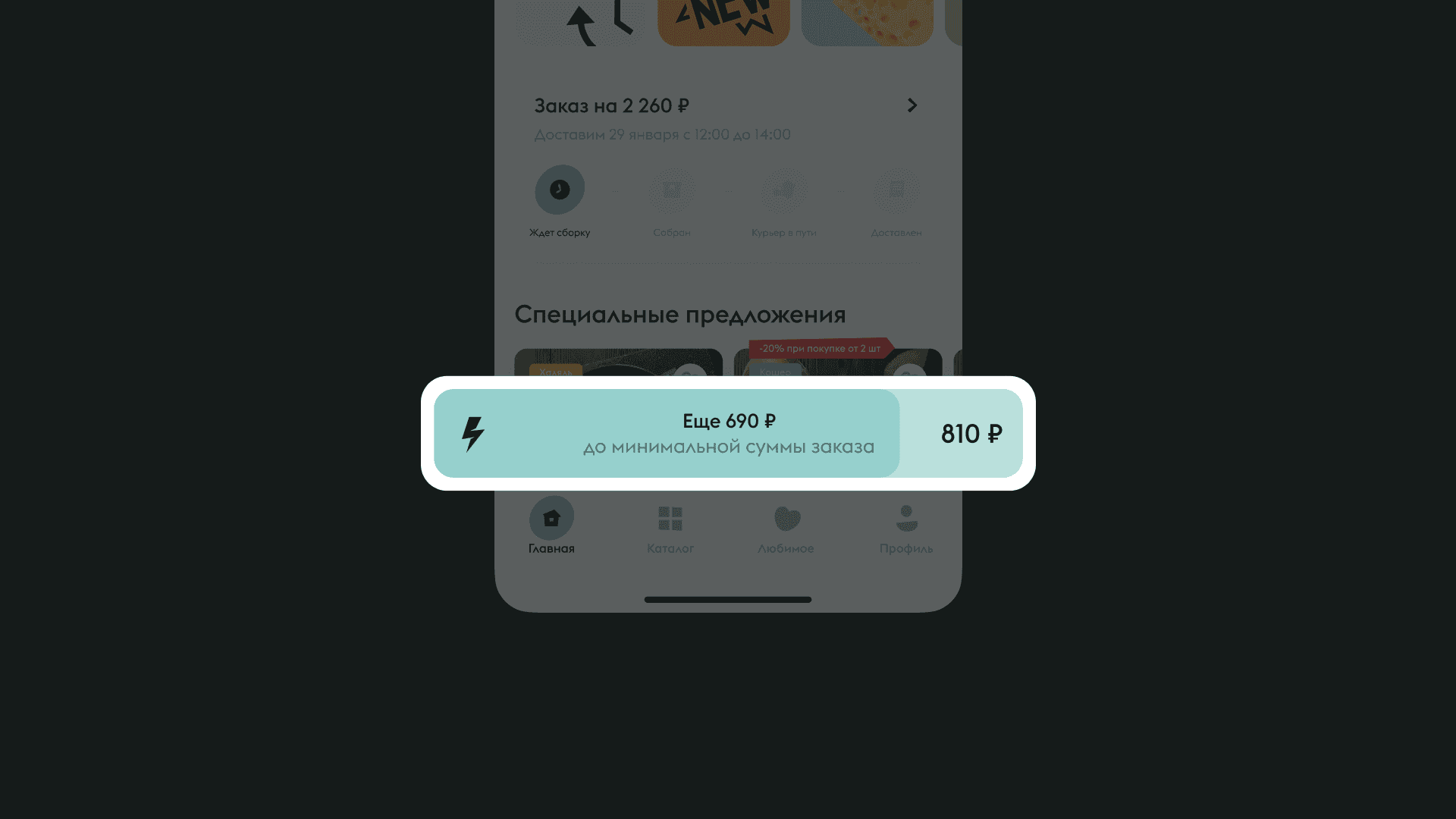 Improved key journeys: Onboarding → address selection, home with delivery-type switch, visible search, clearer catalog navigation, and flexible filters.